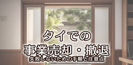 タイでビジネスを運営している日本人経営者の中には、事業の売却や撤退を検討する方も多いでしょう。しかし、実際に事業売却や撤退を進める際には、手続きが複雑で多くの注意点があります。本記事では、従業員5名程度の小規模企業を想定 … 続きを読む 【タイでの事業売却・撤退】失敗しないための手順と注意点